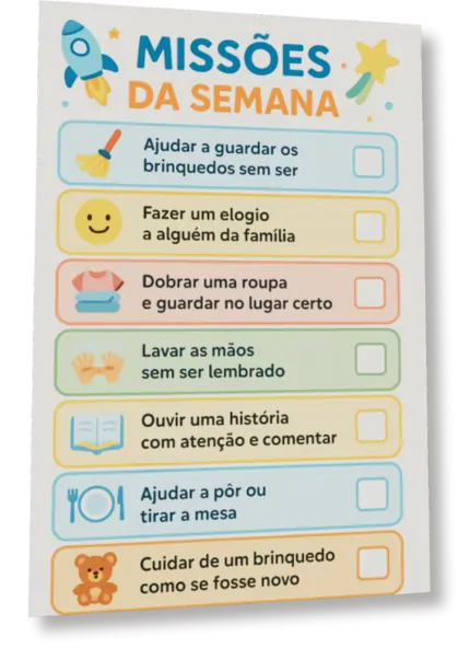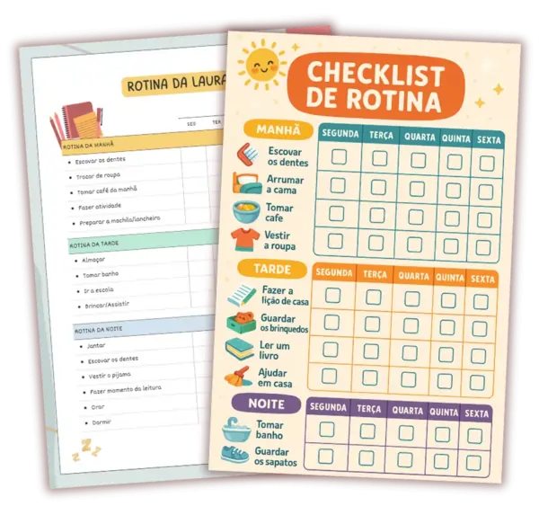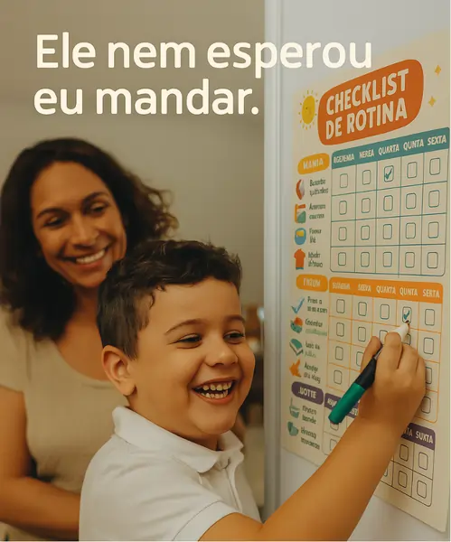 Com esse checklist visual, seu filho sabe exatamente o que precisa fazer e faz sozinho, sem você precisar repetir.