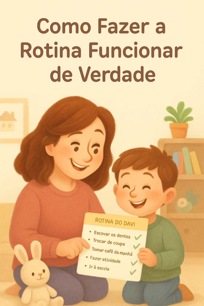 🎁 Por isso, criamos o Checklist de Rotina Positiva, com checklists ilustrados para manhã, tarde e noite, além do quadro para você usar junto com seu filho e tornar a rotina mais leve e colaborativa.